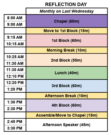 Click here to view Reflection Day Schedule.